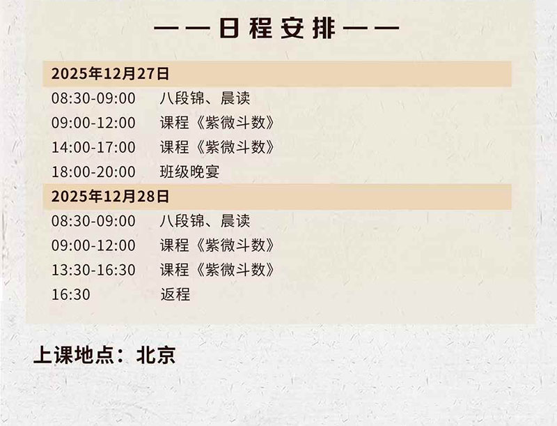12月27-28日 西安交通大学黎荔教授分享《紫微斗数》,探索星曜体系的命理智慧。