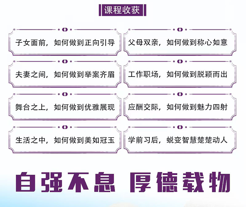 二十载深耕卓越女性全方位提升,课程覆盖文化、艺术、管理、家庭、心理等核心领域,邀您共赴成长之约!