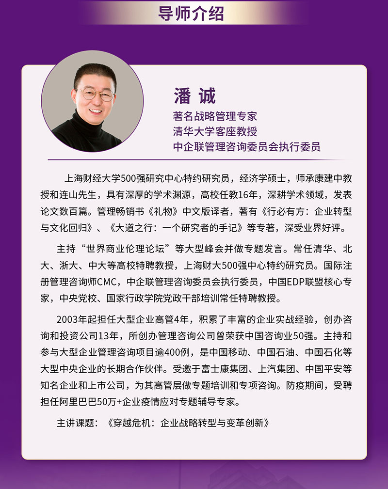 周五【主讲教授及科目】:潘诚《穿越危机·企业战略转型与变革创新》