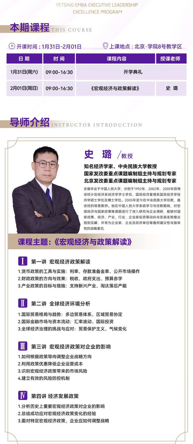 《宏观经济与政策解读》史璐 教授、知名经济学家、中央民族大学教授;国家发改委重点课题编制组主持与规划专家;北京发改委重点课题编制组主持与规划专家