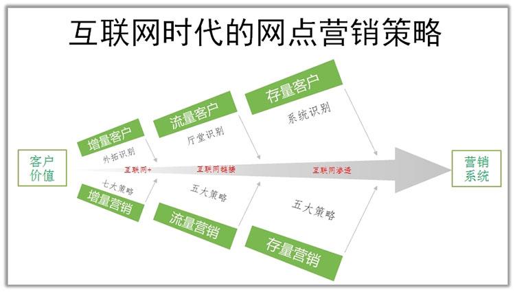 ● 营销渠道:结合互联网营销思维,分别针对增量、流量、存量客户建立不同的营销入口与营销渠道