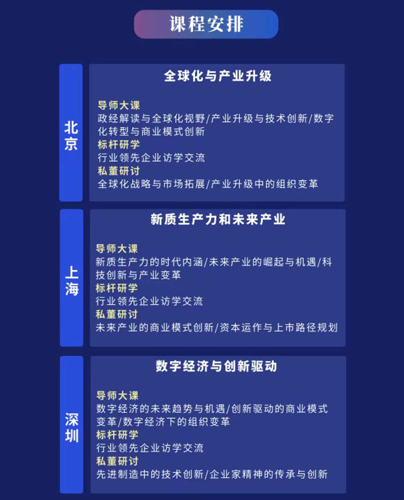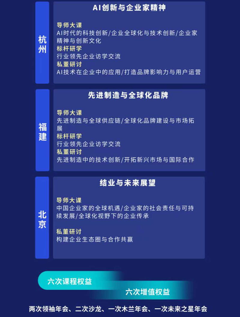 六次课程权益+六次增值权益,每一站都由权威专家、导师、投资人担任领教,以大课、私董会、企业参访、对话交流等形式梳理商业逻辑,碰撞新思维火花。