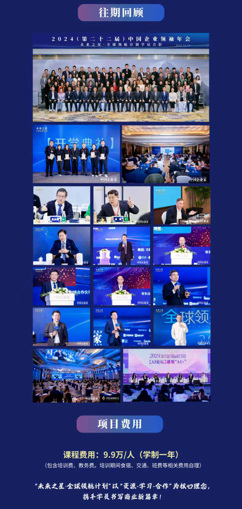 由《中国企业家》杂志社主办的“未来之星全球领航计划”三期开学典礼将于2025年12月7日在北京国贸大饭店举行。“未来之星全球领航计划”,以共创式全球调研与产业资源共享,助力全球产业链联通与中国企业成长。2024至2025年间,课程邀请中国入世首席谈判代表、博鳌亚洲论坛原秘书长龙永图,著名经营管理专家、中国上市公司协会会长、中国企业改革与发展研究会首席专家宋志平,国务院原参事、中国跨境电商五十人论坛创始人汤敏,茅台集团党委书记、董事长张德芹,华大基因CEO尹烨等担任导师,带领企业家学员走进阿里巴巴、小米汽车、京东方、快手、茅台、OPPO、华大基因等头部企业,分享企业走出去的实践和思考,并参访酷家乐、云深处、强脑科技等一批高成长性科技公司,深度感受中国创新的多元生态。