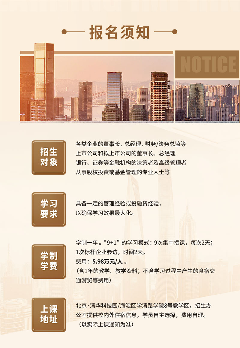 学制:学制一年,9+1学习模式,9次集中授课,1次标杆游学