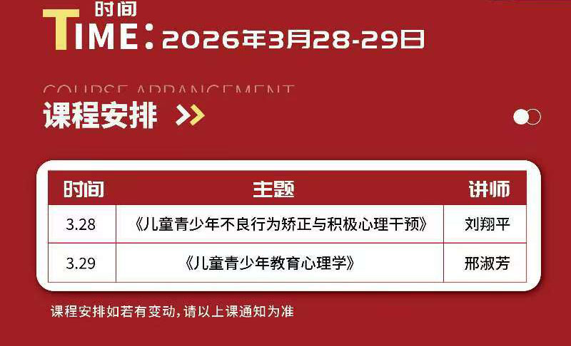 3月28日 《儿童少年不良行为矫正与积极心理干预》刘翔平老师