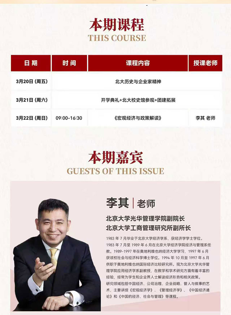 3月22日(周日) <<宏观经济与政策解读>> 李其老师 北京大学光华管理学院副院长,北京大学工商管理研究所副所长