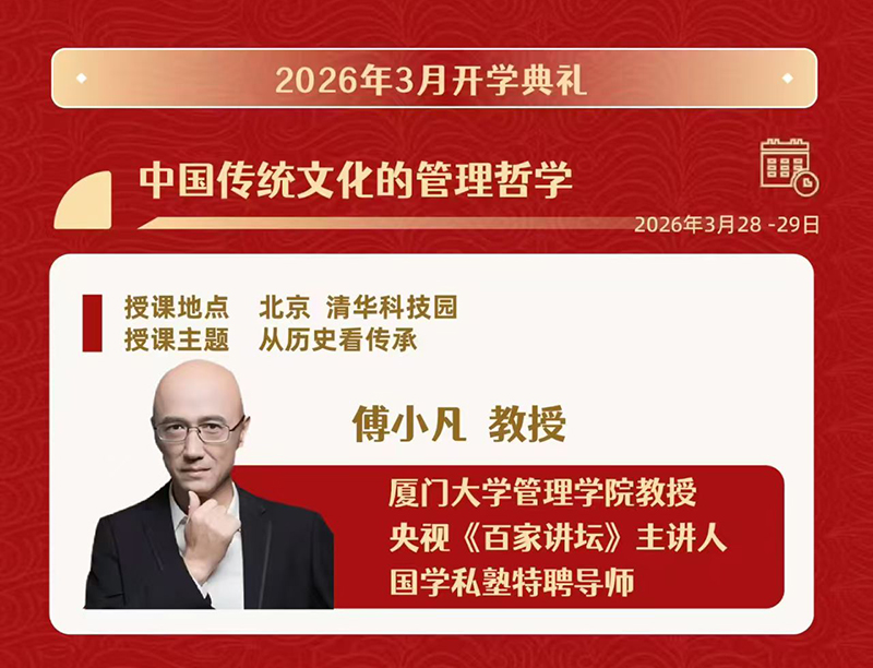 3月28-29日 《从历史看传承》傅小凡 厦门大学管理学院教授,博士生导师;中央电视台《百家讲坛》主讲嘉宾;国学新商塾计划核心导师