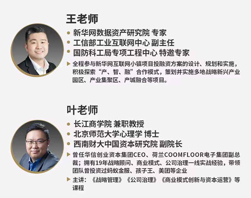 曾任华信创业资本集团CEO、荷兰COOMFLO0R电子集团副总裁;拥有19年战略顾问、商业模式、公司治理一线实战经验,带领团队曾投资过蚂蚁金服、孩子王、美团等企业主讲:《战略管理》《公司治理》《商业模式创新与资本运营》等课程