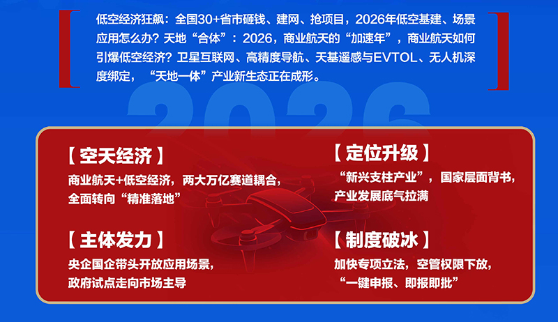 2026年,低空经济狂飙:全国30+省市砸钱、建网、抢项目。商业航天加速年,两大万亿赛道正从“概念验证”转向“精准落地”!