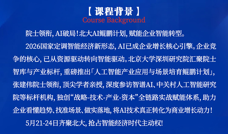 5月21-24日,北大AI鲲鹏计划,AI转型必修课!