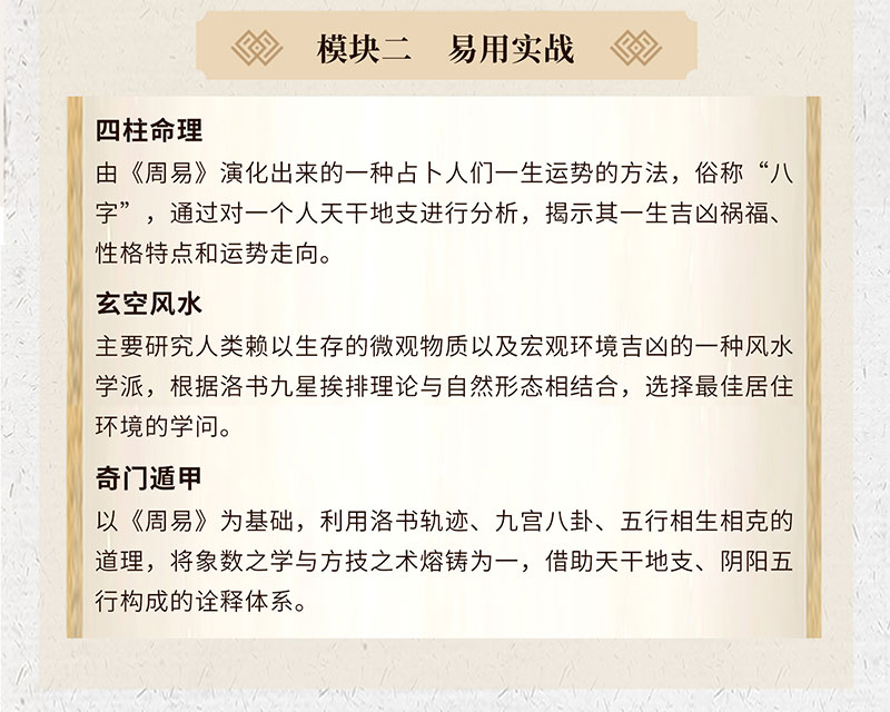 【内容】:周易概论、六十四卦解读、四柱命理、玄空风水、紫微斗数、奇门遁甲