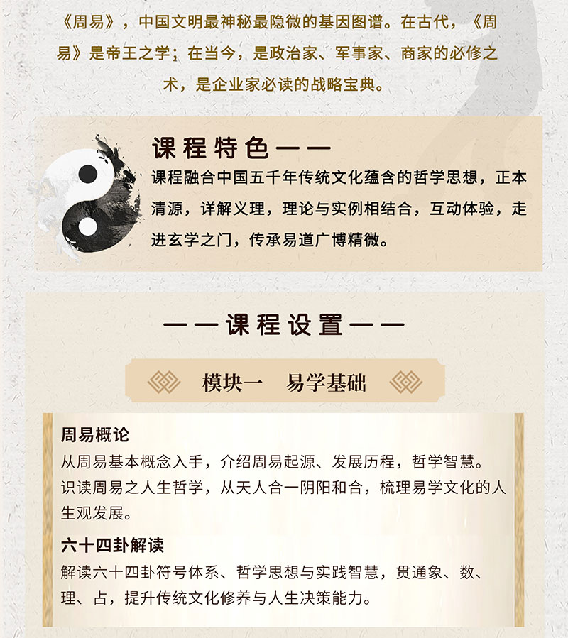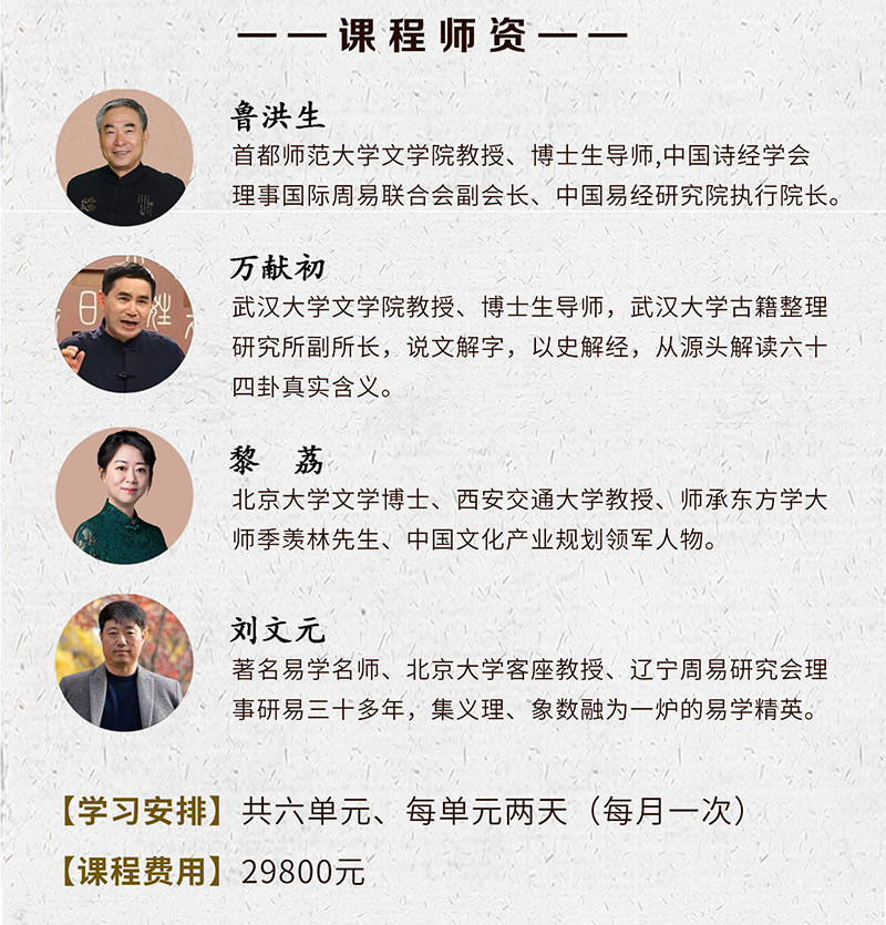 《周易》的学习必须是易理和应用相结合的循序渐进的学习,我们结合多年老师教诲、办学经验及同学口碑为大家精心安排了课程内容及老师,感兴趣的同学可私信发送课表