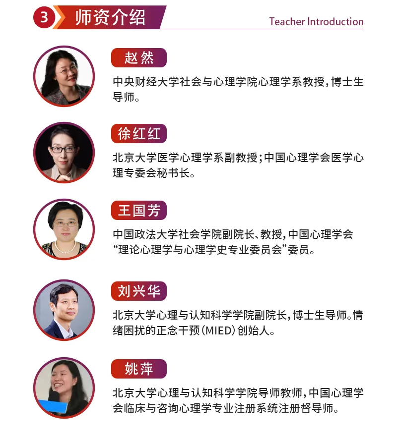 📚课程内容丰富多样,涵盖心理咨询的各个重要领域,更有权威师资团队亲自授课!汇聚业内大咖授课,在顶尖学府氛围中深度学习,拓展专业视野,助你在心理咨询领域开启新征程,心动就别错过! 👩🏫👨🏫