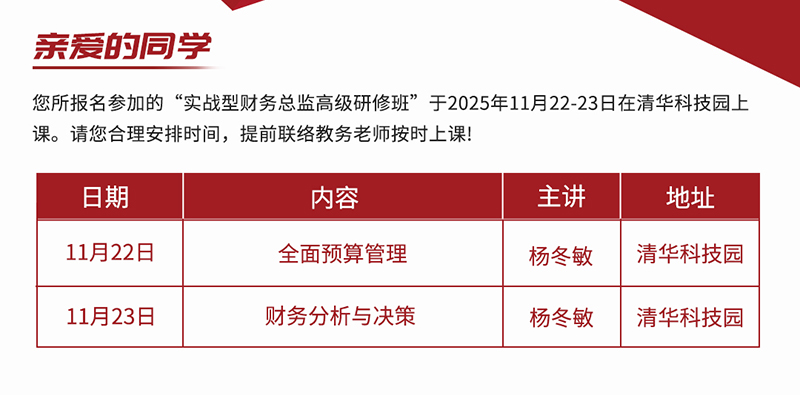 实战型财务总监高级研修班11月课程通知
