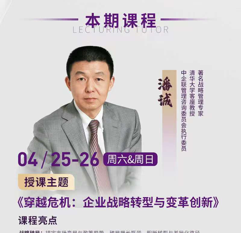 💡清华客座教授、战略管理权威潘诚亲授《穿越危机:企业战略转型与变革创新》,以道 - 法 - 术 - 器四维底层逻辑,为企业决策者拆解周期破局的全链路方案: