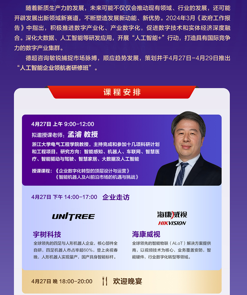 4月27日 上午 《智能机器人及AI前沿市场的机遇与挑战》孟濬 教授浙江大学电气工程学院教授,主持完成和参加十几项科研计划和工程项目,研究方向:智能感知、机器人、车联网、智慧医疗、智能驱动与驾驶、智慧家居、大数据及人工智能。